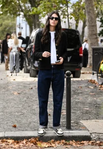 D’abord, le blazer noir transcende son image office pour un style off-duty irrésistible. Par exemple, inspiré d’Alexandra Carl, associez-le à un jean droit et un t-shirt basique. Ensuite, ajoutez un sac vintage coloré, des bijoux superposés et des lunettes oversize pour une note personnelle ludique.